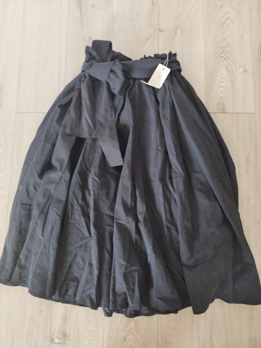 - 新品 タグ付 Riche glamour フレアースカート 共布リボン 黒 ブラック M