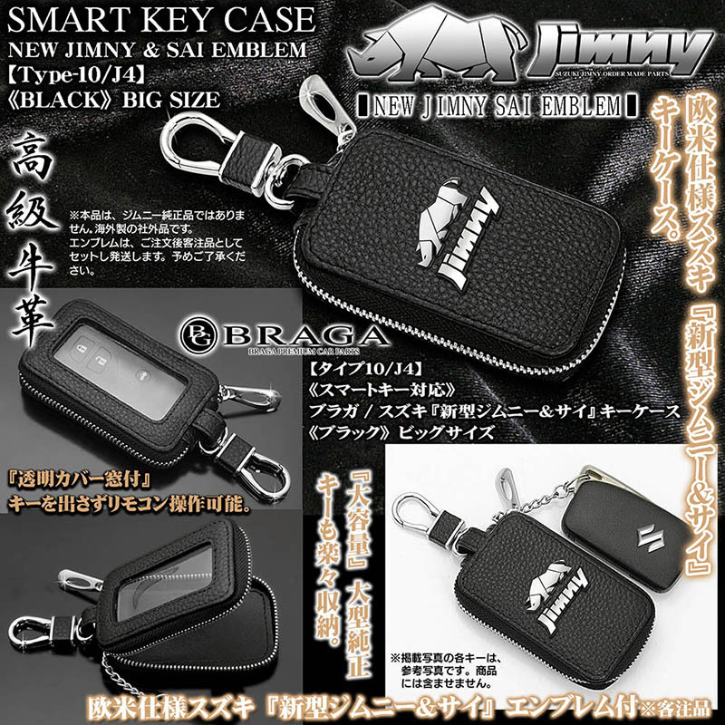- JB43W/74W,JB31/32/タイプ10/J4/ジムニー/Lサイズ/ブラック/キーケースJIMNY・サイ エンブレム,窓/スマートキー/牛革/客注品/ブラガ