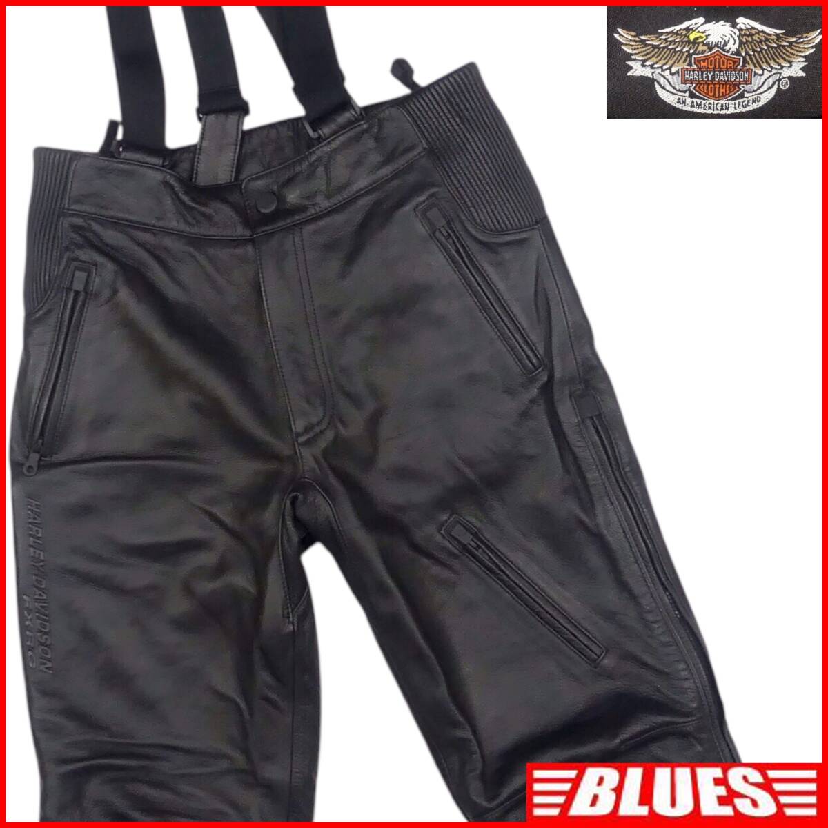 - 即決★HARLEY-DAVIDSON FXRG★メンズ W30 レザーライディングパンツ ハーレーダビッドソン 黒 サスペンダー 防水 本革 本皮 裾ジップ