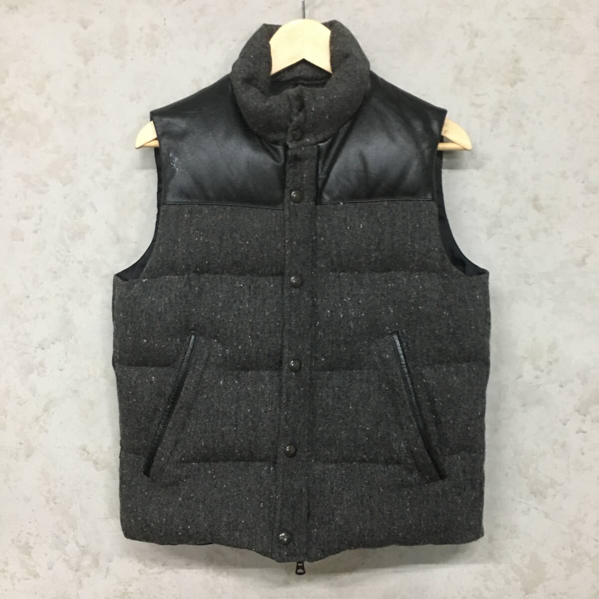 > FNY22/32 EDIFICE エディフィス レザー切り替えウールダウンベスト メンズ サイズ44 牛革 古着 ブラック 黒系 ※中破れ、粘着物あり〇