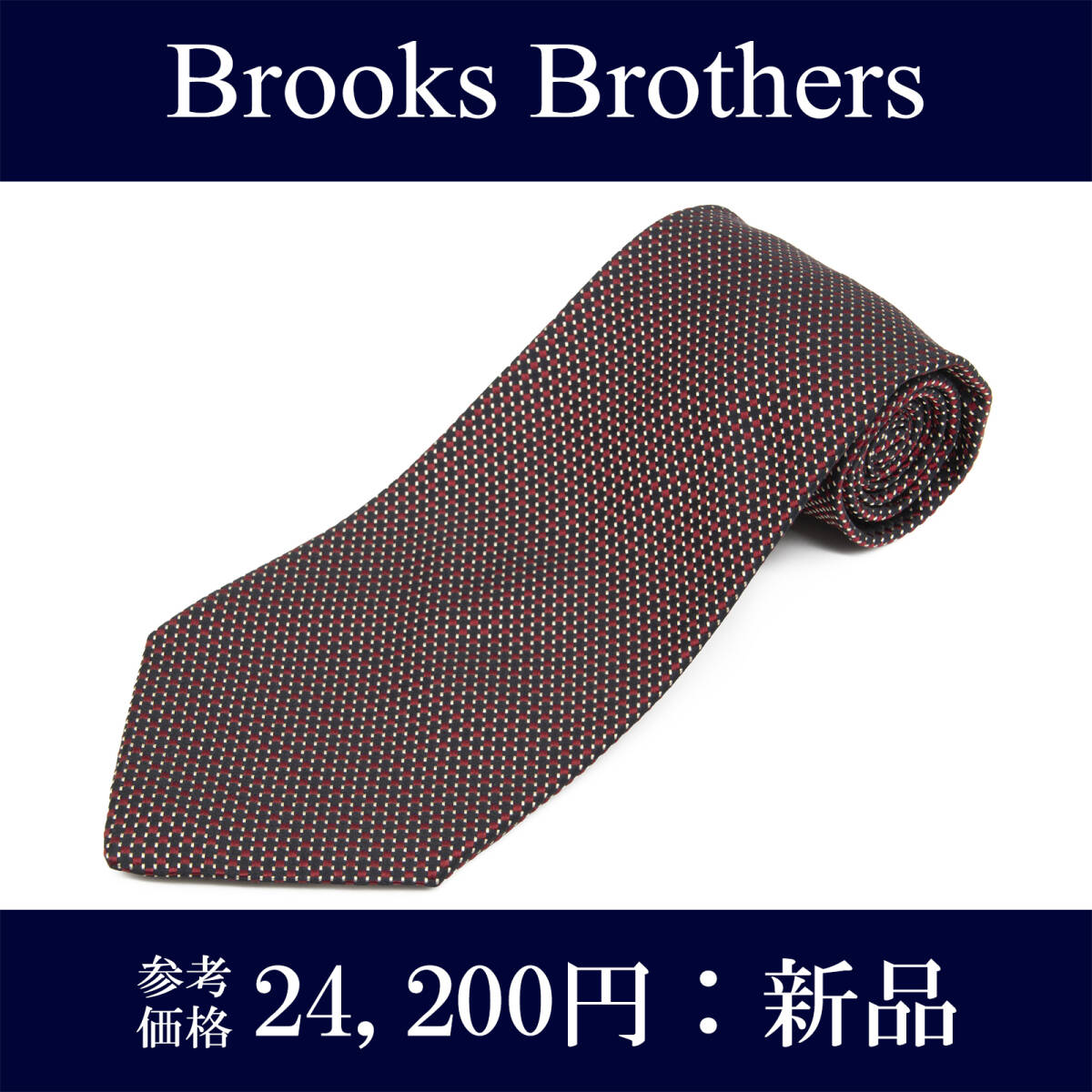 > 送料無料 ブルックスブラザーズ ネクタイ ジャガードタイ 新品 シルク 黒 赤 バーガンディー ブランド 点 ドット 四角 スクエア 綺麗 N727