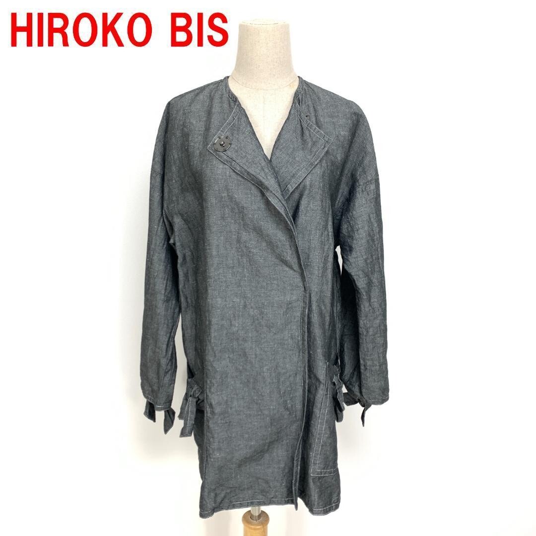 > A5609 ヒロコビス ヒロココシノ ジャケット HIROKO BIS コットン ノーカラー リボン綿 リネン グレー 9