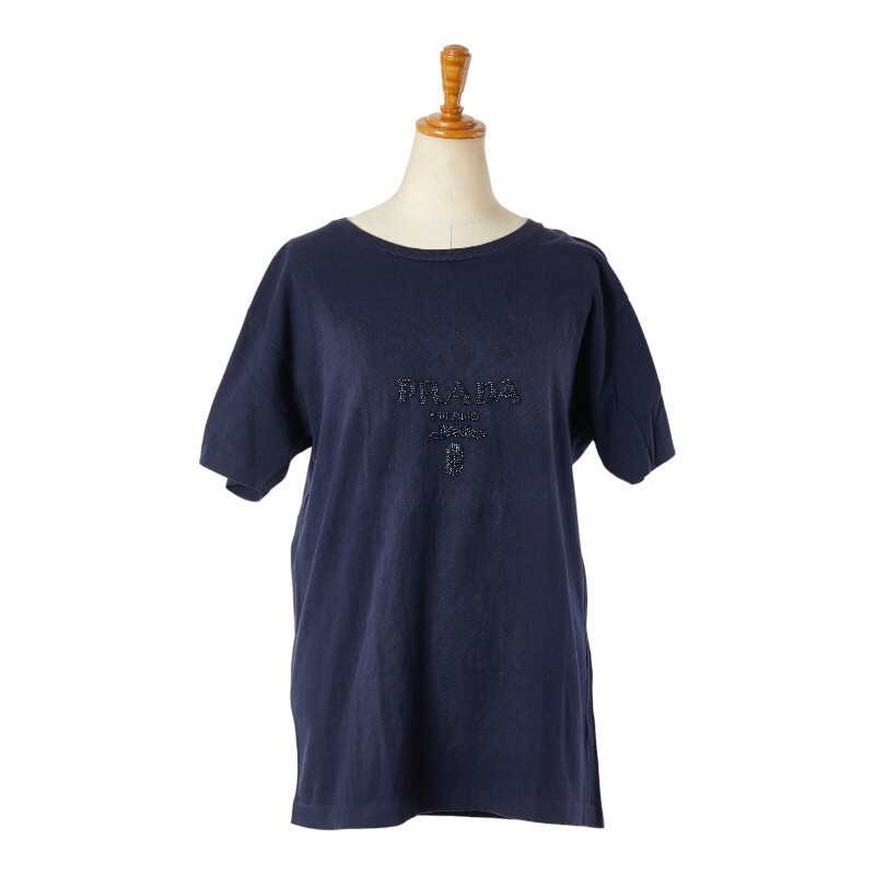 プラダ ロゴ ビーズ ビジュー Tシャツ サイズ:M ネイビー コットン メンズ PRADA 【中古】拍卖