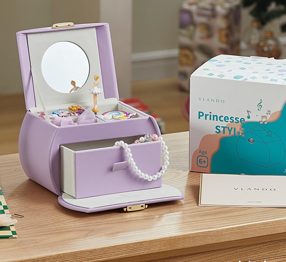 - ジュエリーボックス 娘へのプレゼント 半円形 鏡付き オルゴール プレゼント子供 携帯用 引き出し 2段(ラベンダー)