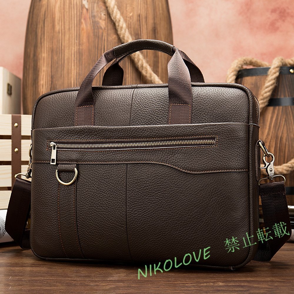 - 新品 牛革 ビジネスバッグ 本革 レザー 通勤鞄 2way ブリーフケース 男性用 ビンテージ ショルダーバッグ コーヒー