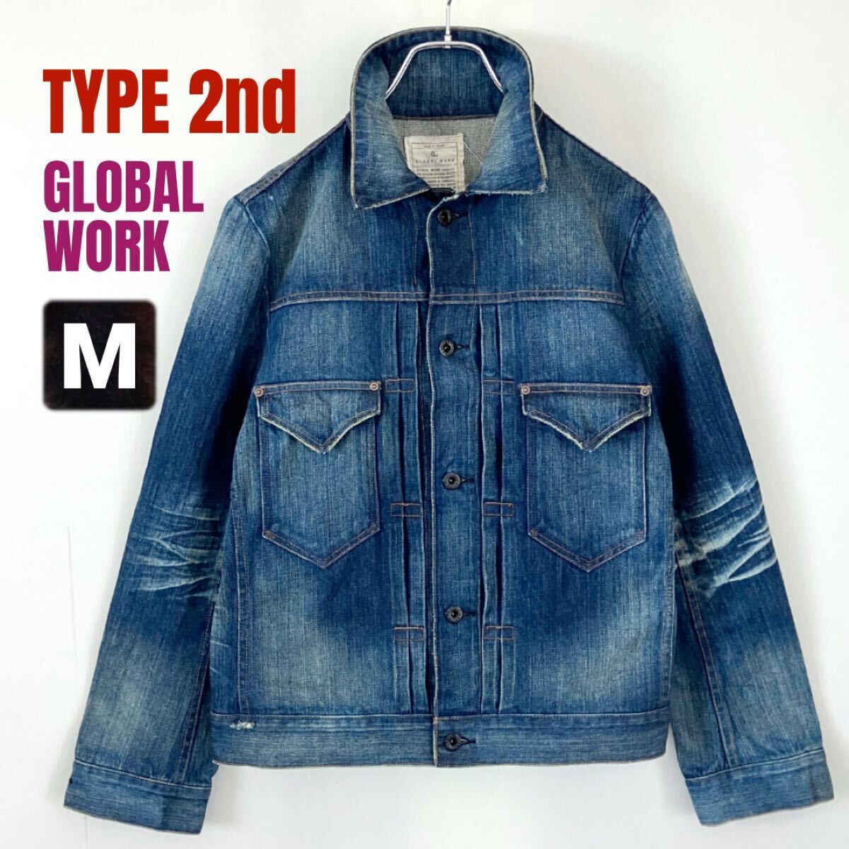 - 2ndタイプ/デニムジャケット/セカンド型ジージャン★USED加工★グローバルワーク★メンズM