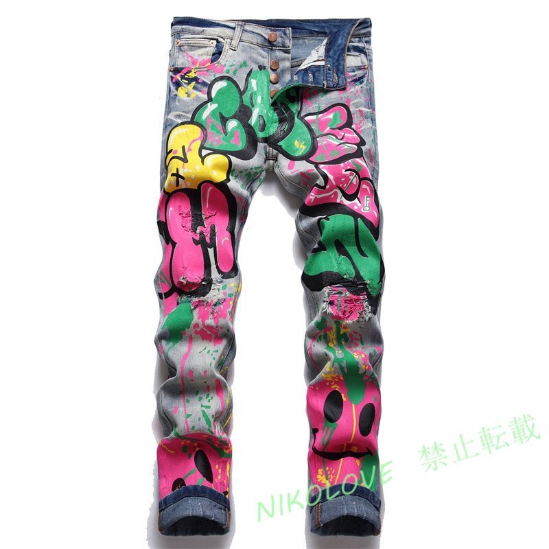 - 新品 メンズ デニムパンツ 個性ジーンズ ジーパン ダメージ加工 スキニーパンツ ストレッチパン大きいサイズあり W29~W38