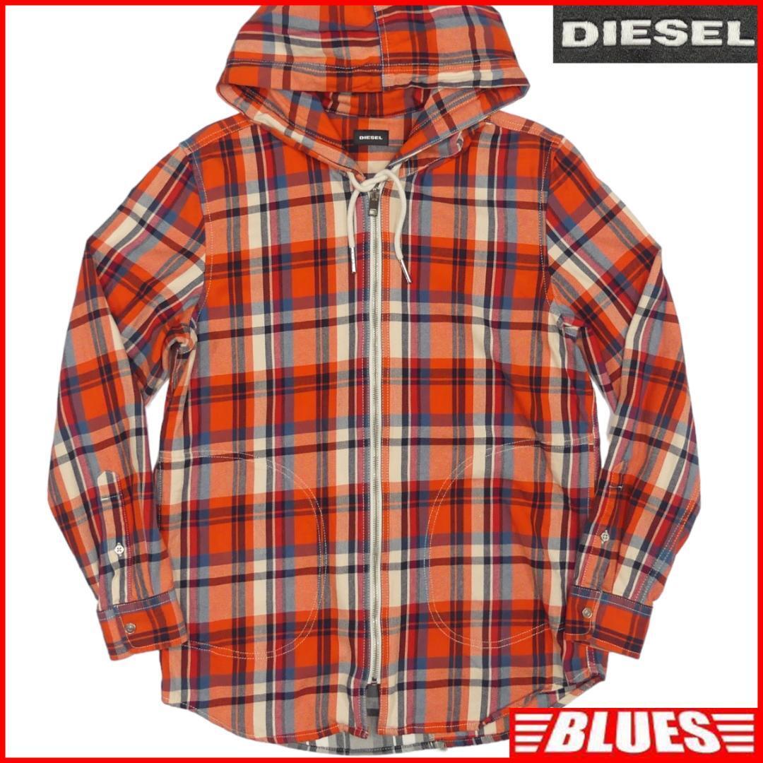 > 即決★DIESEL★メンズS スウェット ディーゼル 赤 オレンジ チェック トレーナー カットソー 長袖 ロンT