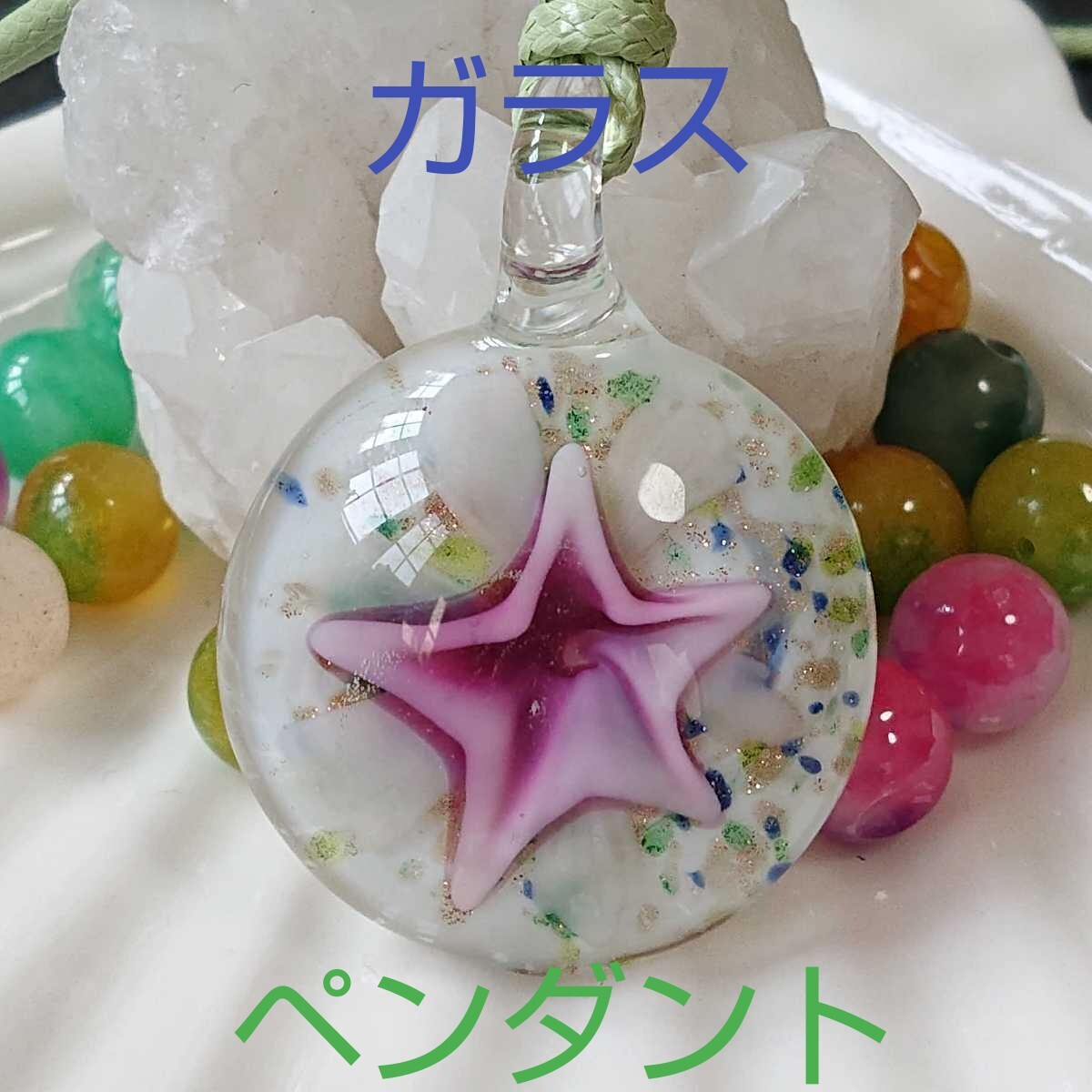 - ガラスペンダント★フラワー★F-2★ピンク★1連《ワックスコード・パステルグリーン》《同梱・まとめて取引可能》