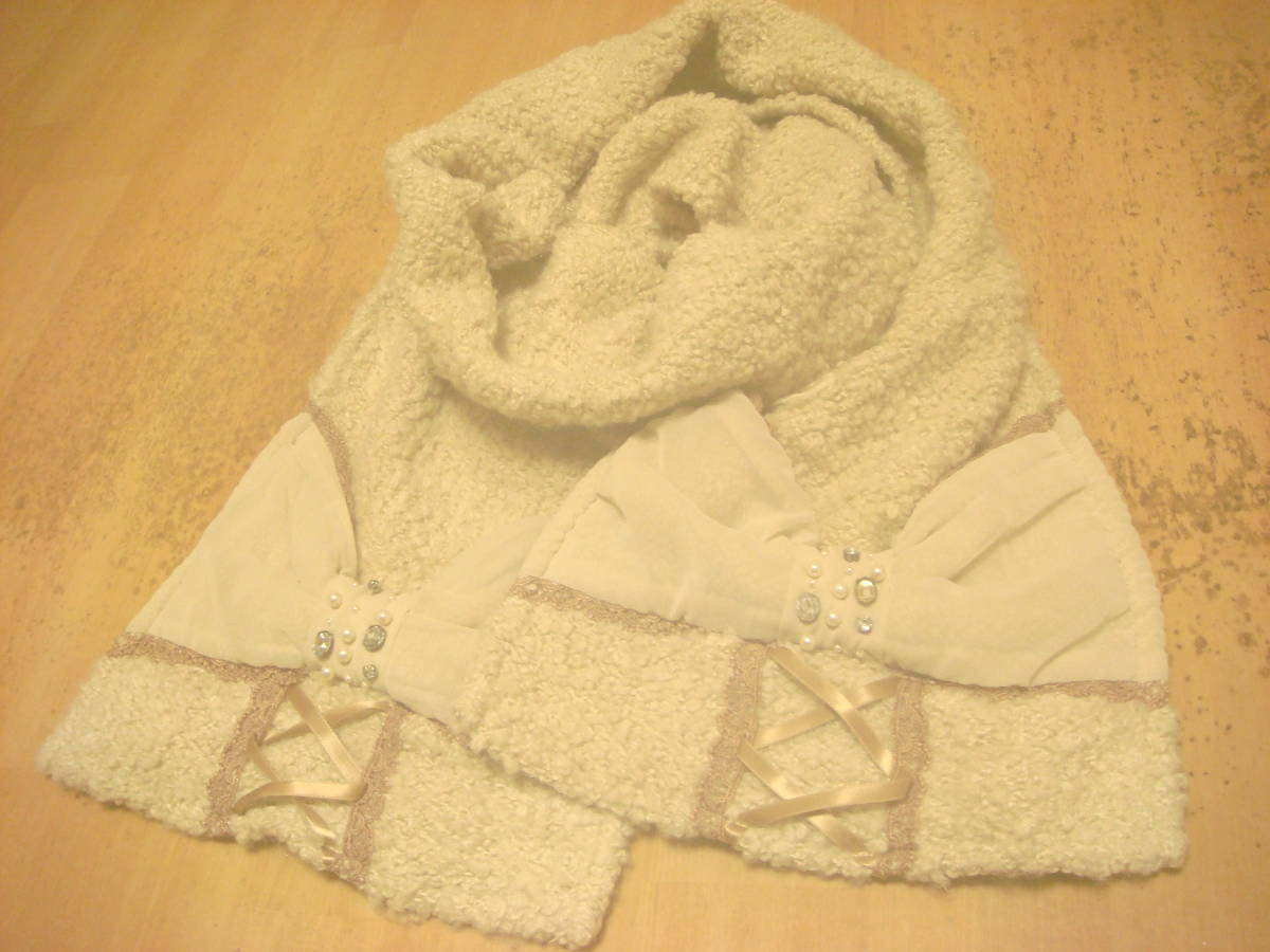 - アクシーズファム ビジュー付き リボンデザイン ボア風 マフラー ベージュ系 2