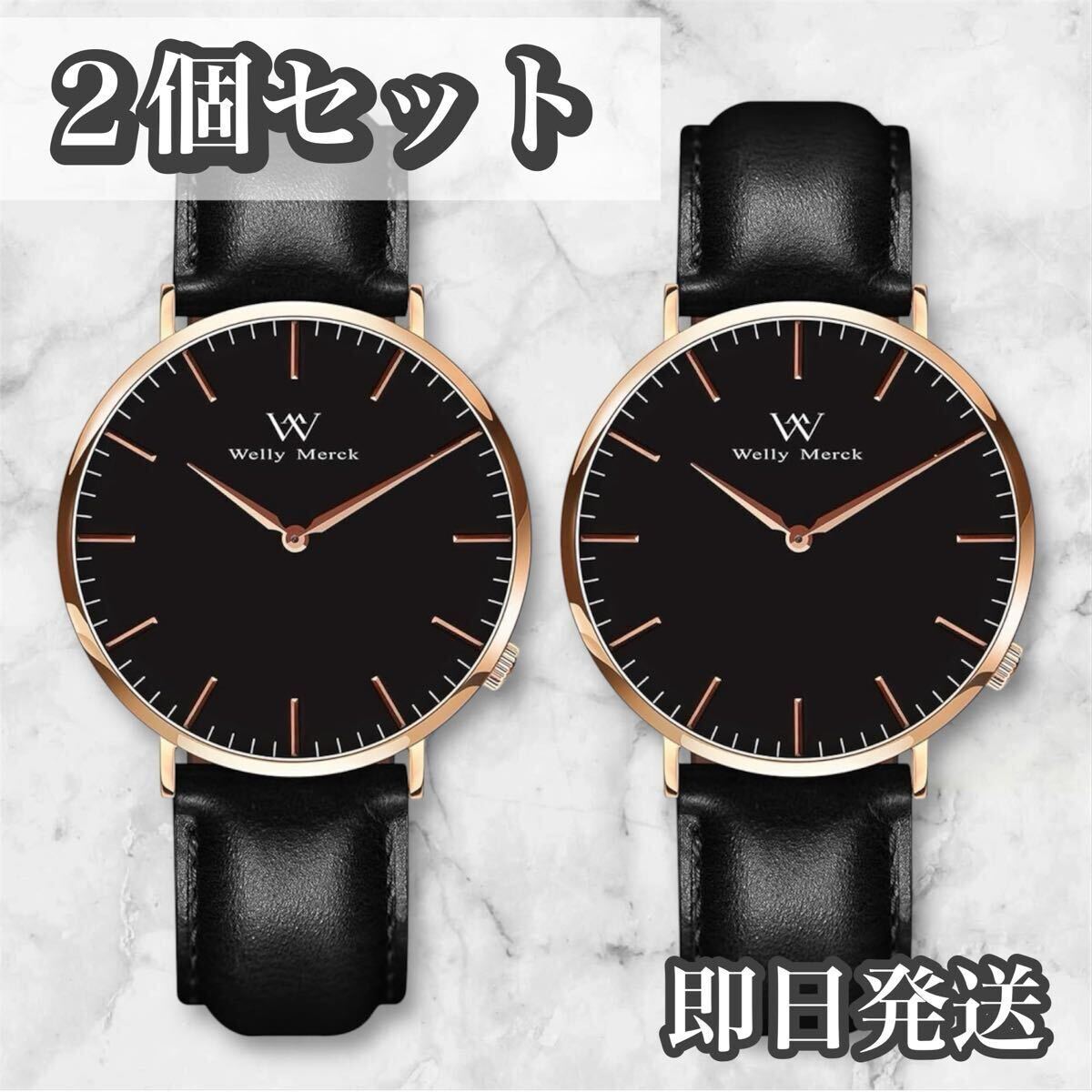 - 大特価 メンズ腕時計 サファイアガラス レザーベルト 黒 かっこいい クォーツ ブラック文字盤 お揃い カップル プレゼント