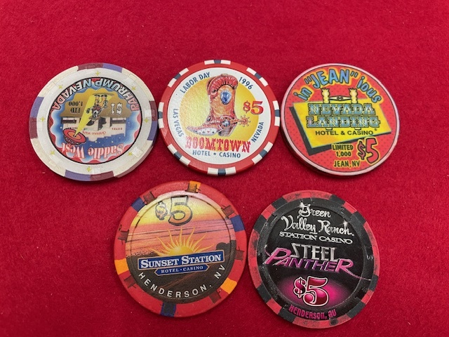 - C-47現状品 チップ入手困難 本場海外 ラスベガスなど ヴィンテージ カジノチップ $5など ポーカーチップ ゴルフマーカー5枚セット