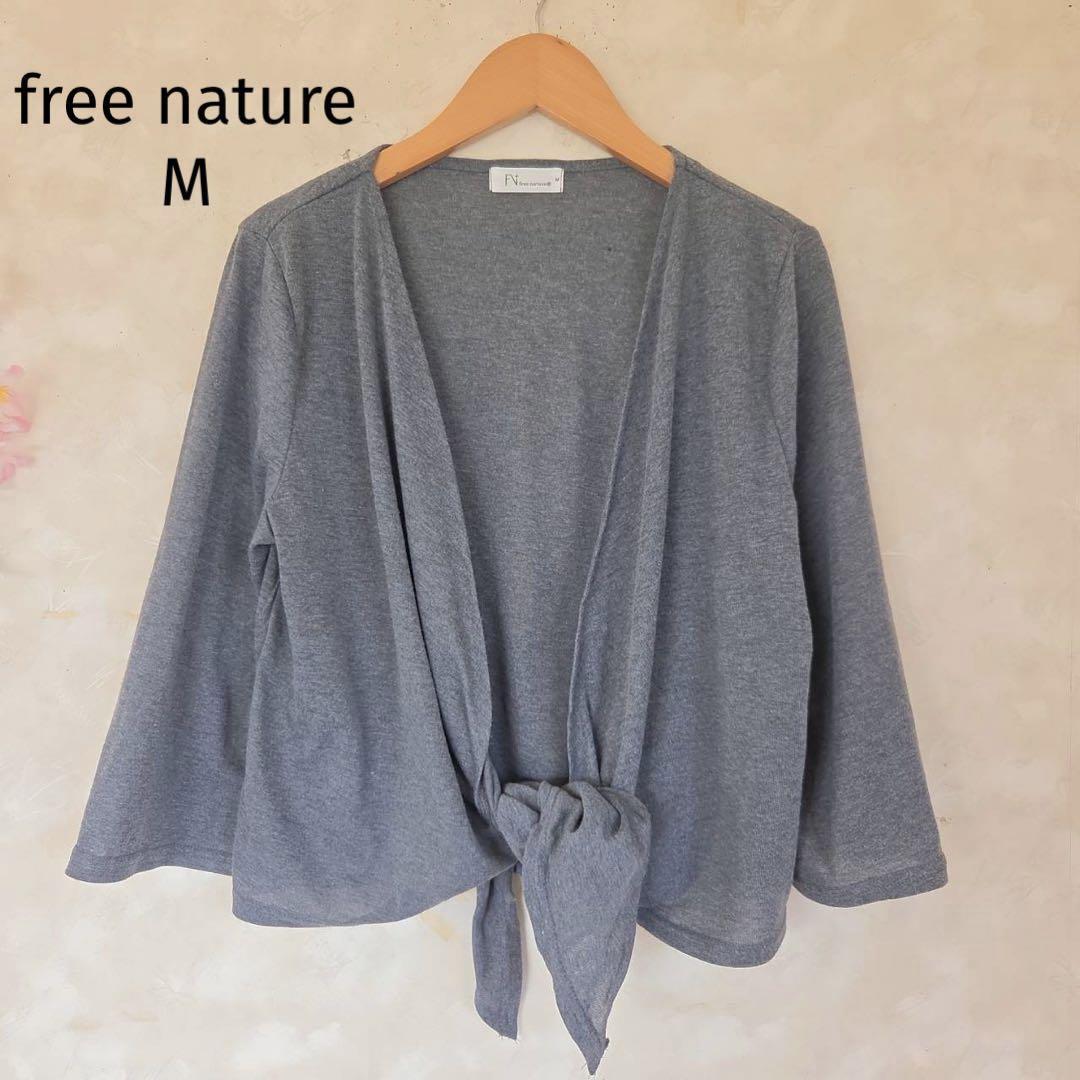 - free nature カーディガン【M】フロント絞り グレー 七分袖