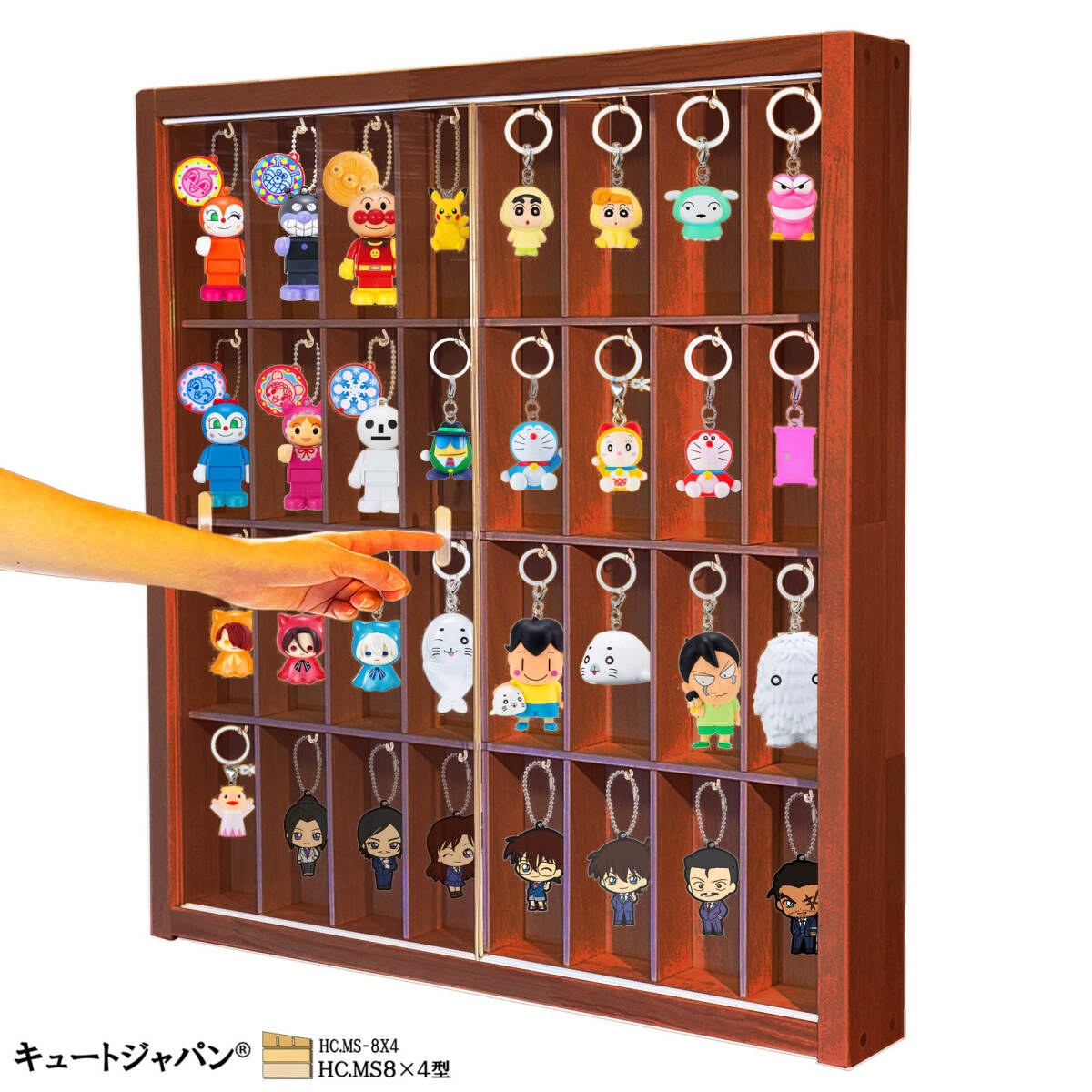 > 送料無料★コレクションケース ガシャポン 32マス キーホルダー 収納棚 マホガニ色全塗装 アクリル障子付 HC・MS8×4型