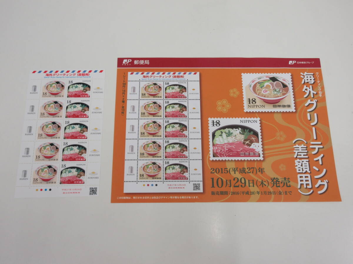 - 未使用 海外グリーティング 差額用 18円 切手シート 平成27年 解説書付き