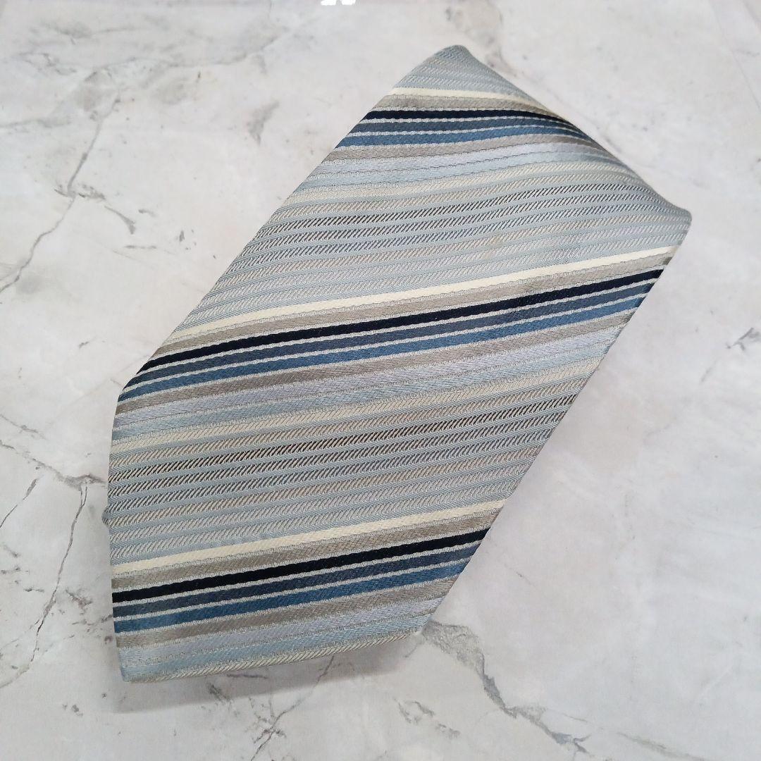 - ポールスミス ネクタイ 薄い水色 濃い青、白、グレーストライプ 絹【n1336】