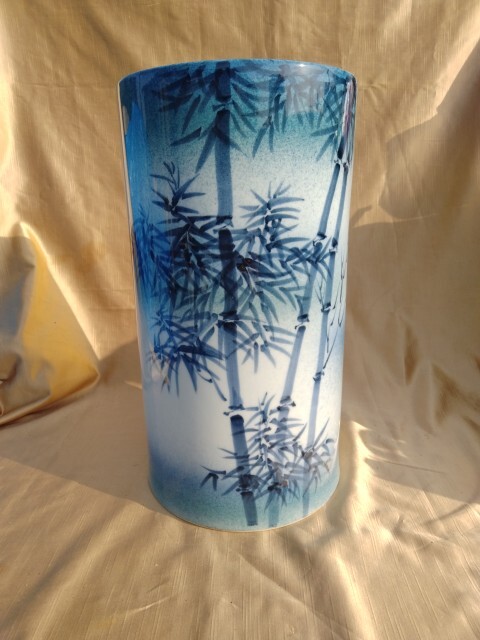 - 傘立て 秀峰窯 竹 藍から青へ 21.5x40cm