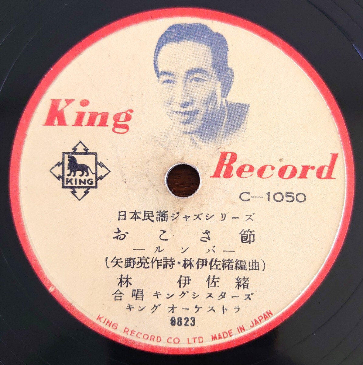 - 【SP盤レコード/縁小欠】KING RECORD C-1050 日本民謠ジャズシリーズ/眞室川音頭-ブギ-真室川音頭/おこさ節-ルンバ-林伊佐緒
