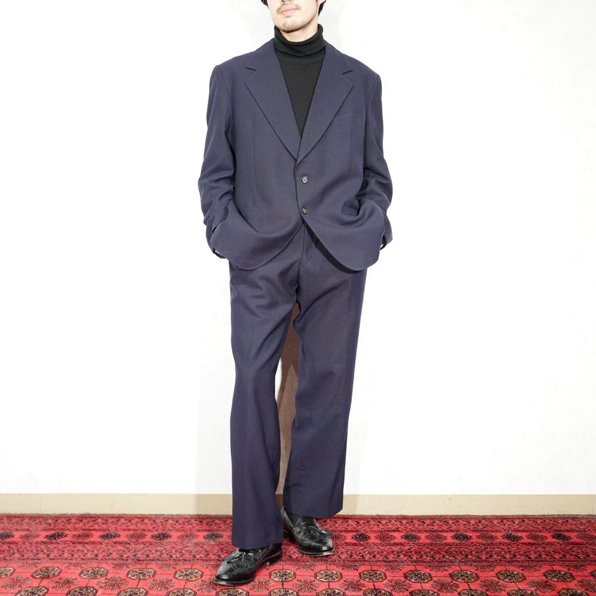 > EU VINTAGE NAVY COLOR DESIGN SET UP SUIT/ヨーロッパ古着ネイビーカラーデザインセットアップスーツ