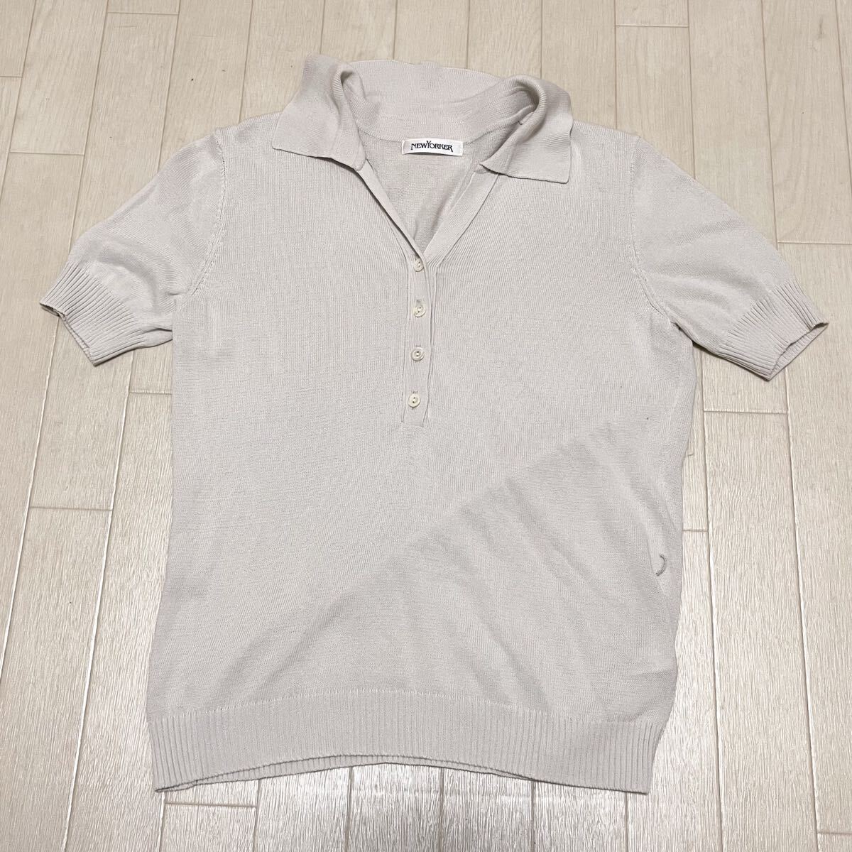 > 和716★ NEWYORKER ニューヨーカー 半袖 ニット セーター スキッパーカラー 薄手ニット M ライトグレー レディース