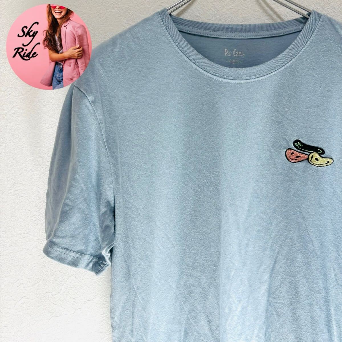 - Pac Cares メンズ ワンポイント刺繍 ヴィンテージ 半袖Tシャツ 水色 XL ビッグシルエット USA 古着 #SB0094