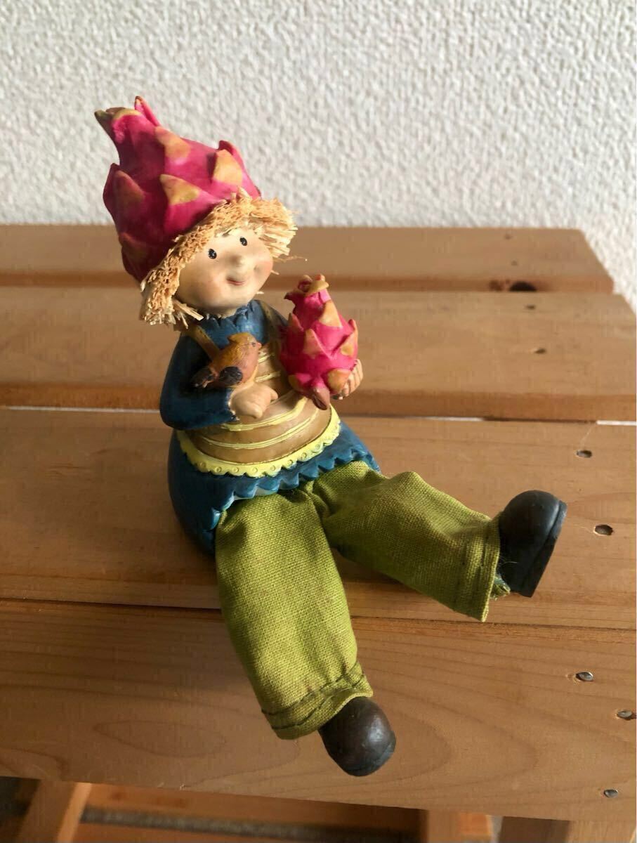 > ドラゴンフルーツの妖精 人形 置物 おすわり妖精 ガーデニング雑貨 ガーデンオーナメント ハンドメイド ドール アンティーク