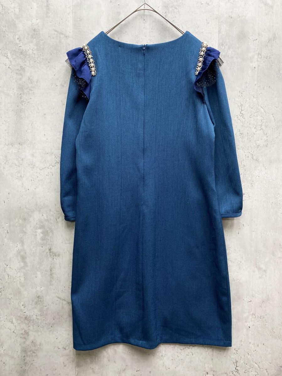 - ゆうパケットOK croix クロワ ユナイテッドアローズ 5626-699-2573 ビジュー 長袖 ミニ ワンピース 青 ■◇