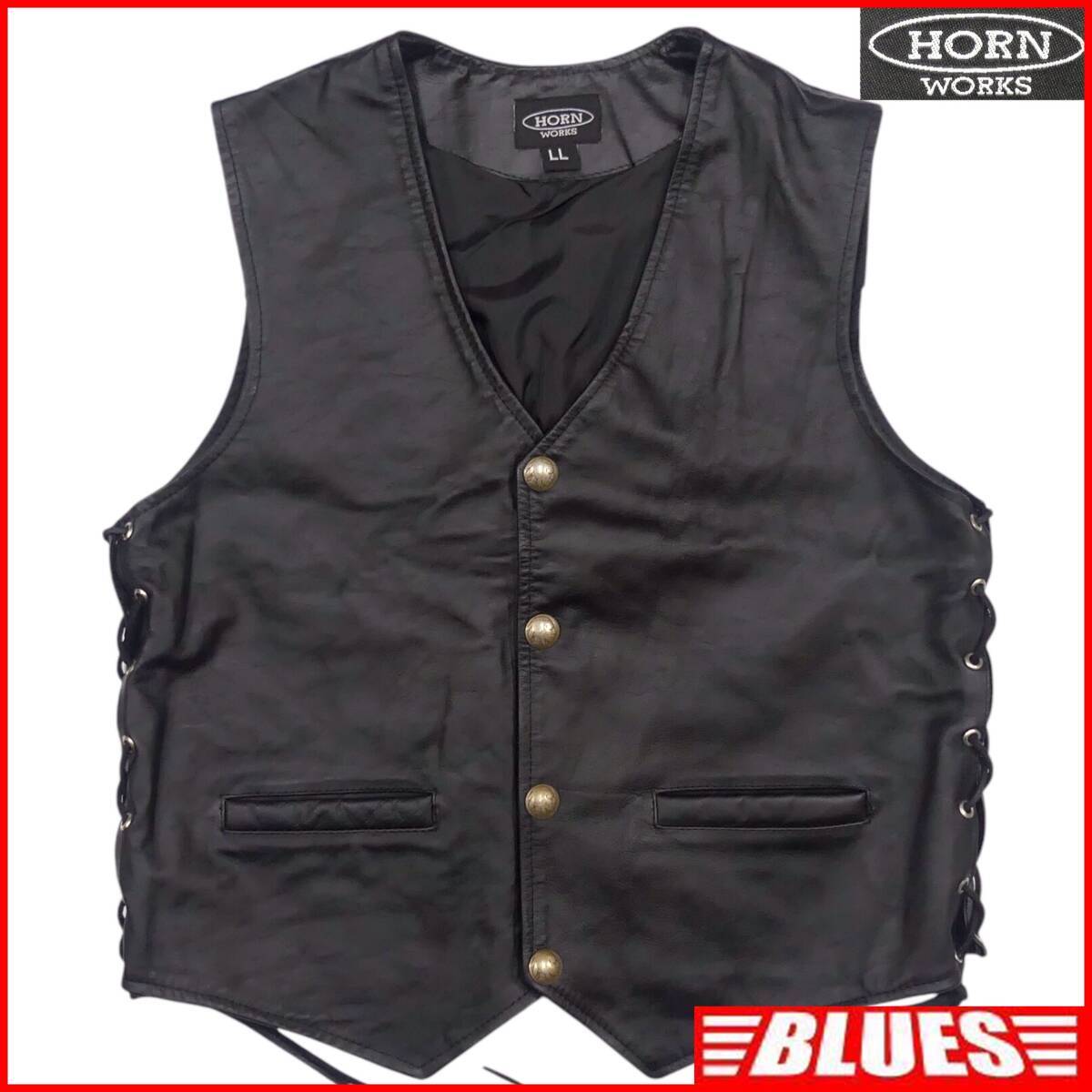 - 即決★HORN WORKS★メンズ XL レザーベスト ジレ ホーンワークス 黒 本革 ライダース 皮 パンクロック ジャケット ライディング ツーリング
