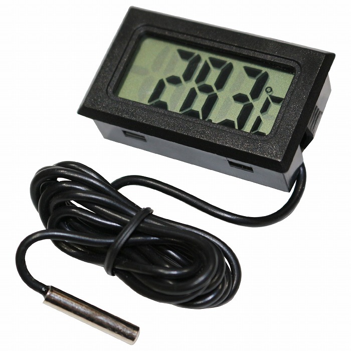 - 【送料220円】『水温系/温度計』デジタル式 熱帯魚 ミルク 冷蔵庫 室内 車内 水槽 タンク メダカ 金魚 ブローブ式センサー 配線長100cm 黒