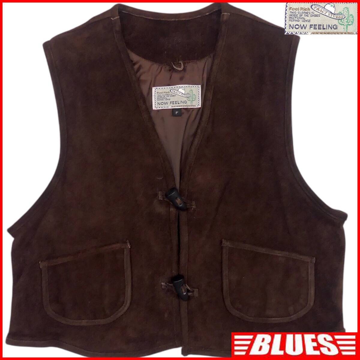 - 即決★NOW FEELING★メンズ レザーベスト ジレ ナウフィーリング F 茶 スエード 本革 ライダース 本皮 ジャケット ライディング ツーリング