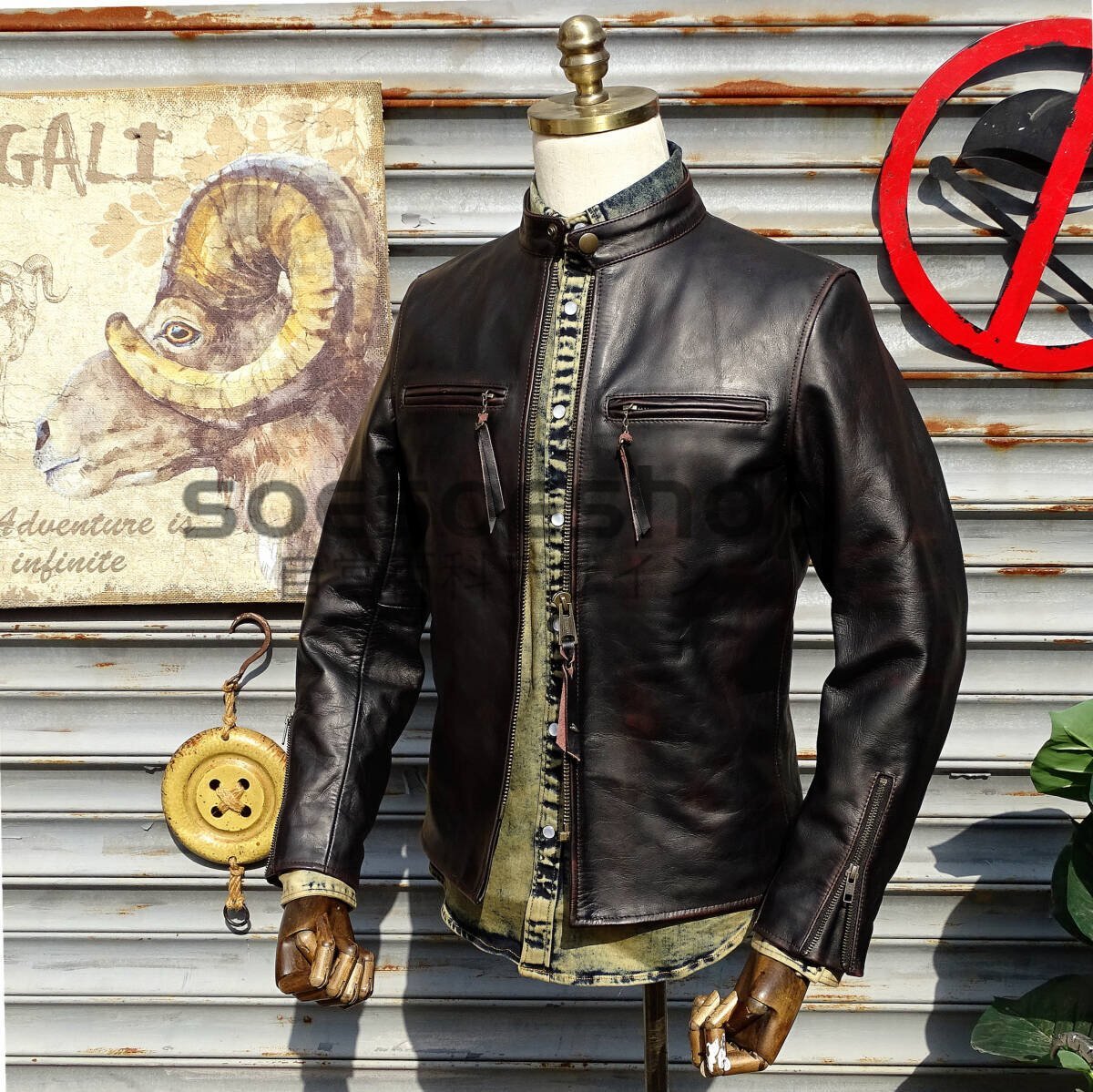 > 紅茶芯 レザージャケット 革ジャン シングルライダース 馬革 ホースハイド 本革 ヴィンテージ アメカジ メンズファッション S~5XL