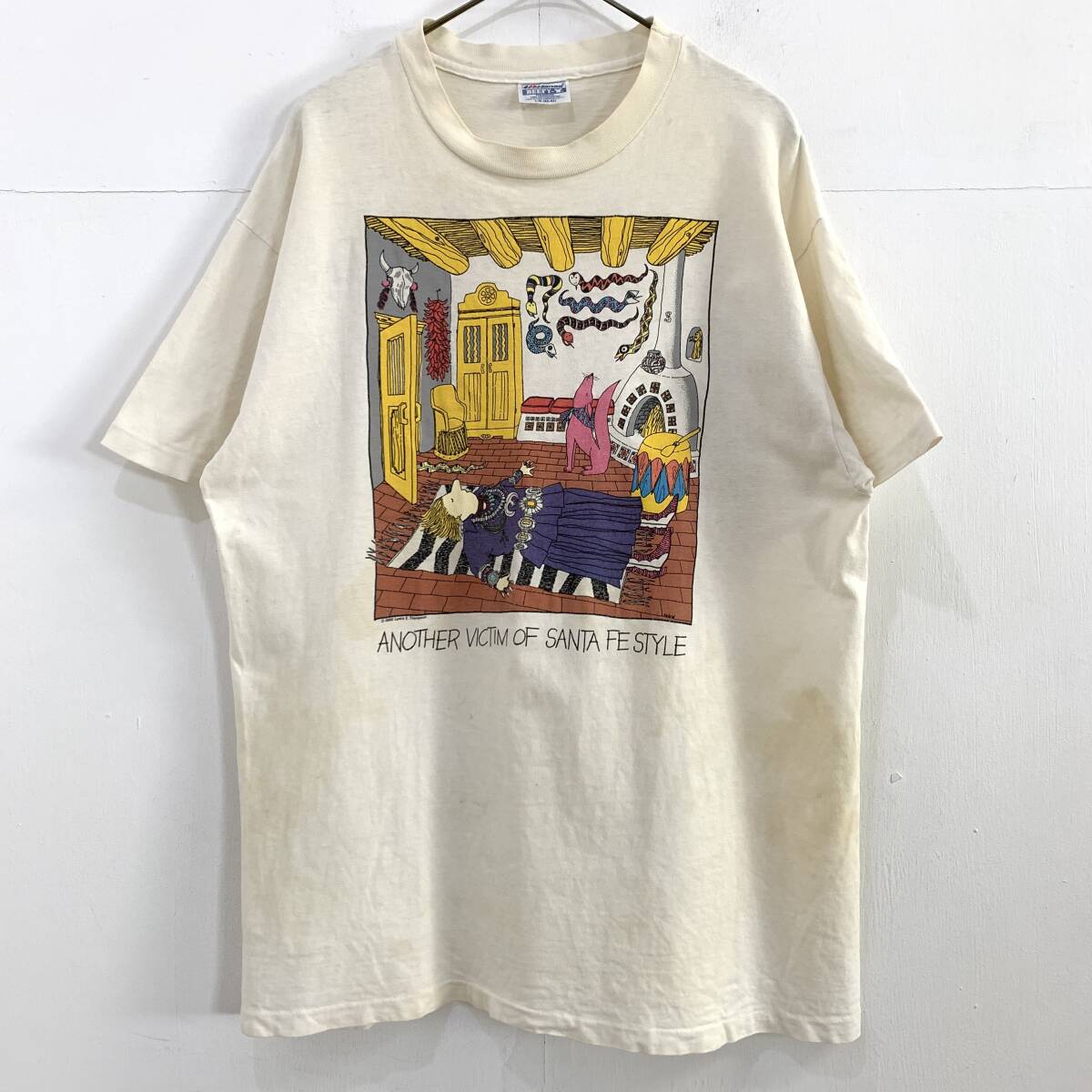 > ☆Hanes BEEFY-T Vintage USA製 Lewis Eugene Thompson アート イラスト 大判プリント Tシャツキナリ系 L【レターパックライト郵送可】A
