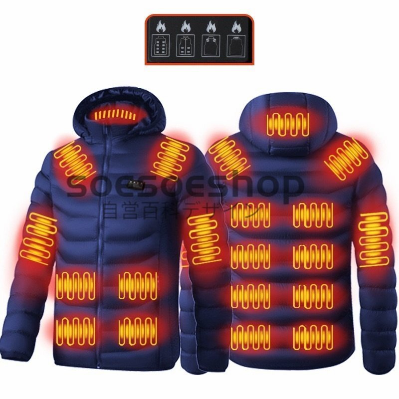 - 人気品L 青/電熱服 ジャケット【前後19箇所発熱】スイッチ独立設定 3段階温度調整 防寒服 長袖 冬作業服[付属20000mAhバッテリー]
