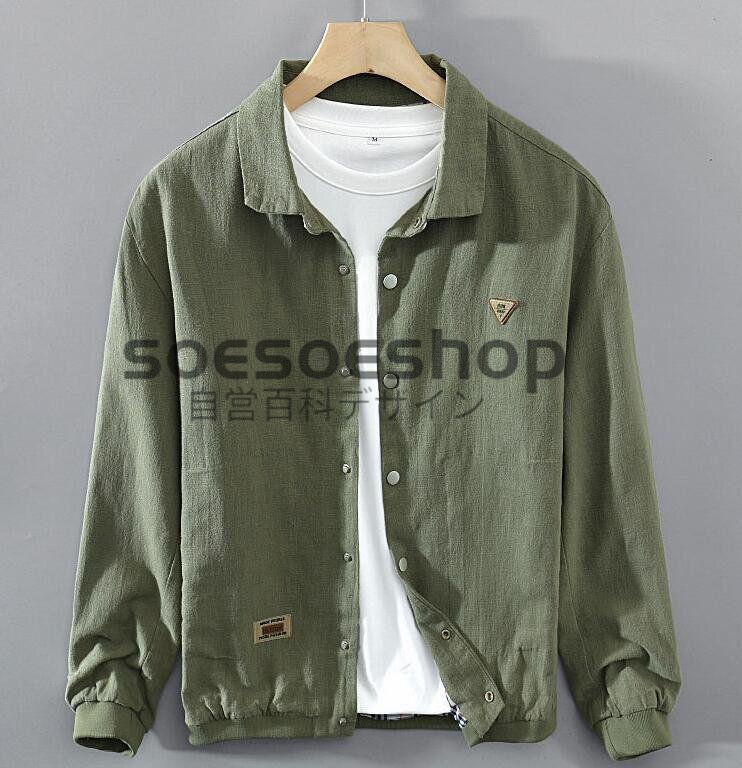 - 新品 リネンジャケット メンズ 長袖シャツ ジャンバー ブルゾン 無地 綿麻 ヴィンテージ 春夏 アウター カジュアル 心地良し グリーン 2XL