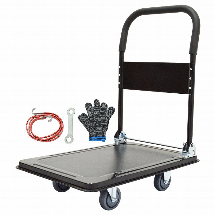 - 300kg 手押し台車 大型 天板70cm×46cm 静音 キャスター付 折りたたみ スチール 台車 業務用 配達 運搬 キャリー 黒 ブラック