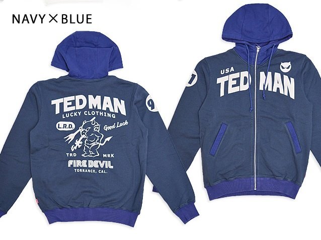 > スウェットパーカー◆TEDMAN/テッドマン ネイビー×ブルーXLサイズ(サイズ44)TDSP-159 エフ商会 スエット efu