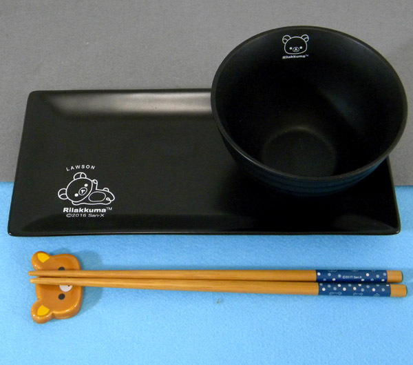 - ★ リラックマ ★ おかず皿 & ごはん茶わん & 天然竹の箸・箸置き(LAWSON・ローソン限定) 【3点セット】