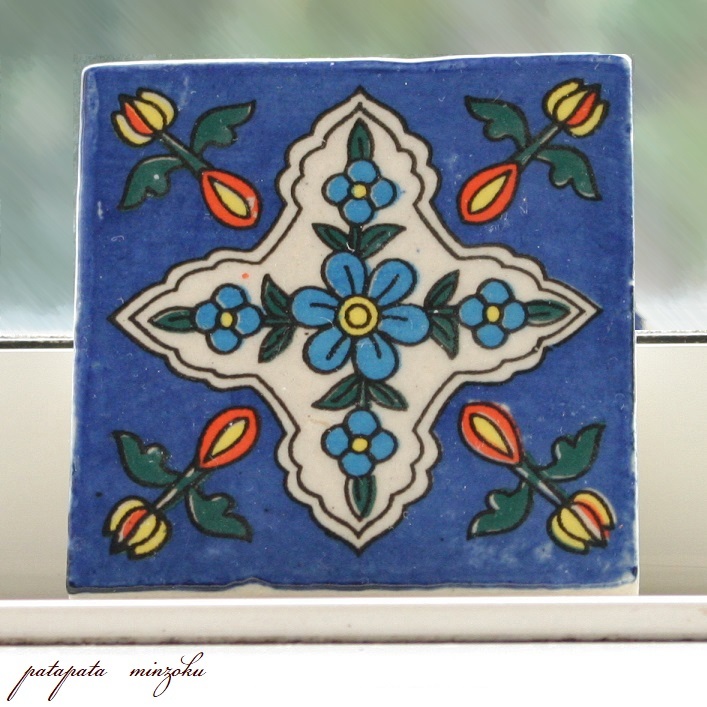 > ブルーポタリー タイル SS L インド 手描き タイル エシカル パタミン 内装 リフォーム 水回り オブジェ ディスプレイ