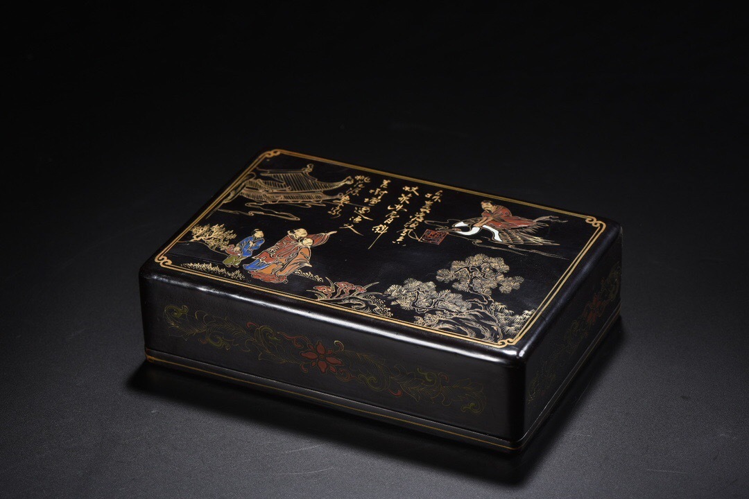 - 『館蔵珍品 木胎漆器彫 描真金 指日高升紋 首飾盒』置物 賞物 貴重物品 収蔵品 中国古美術