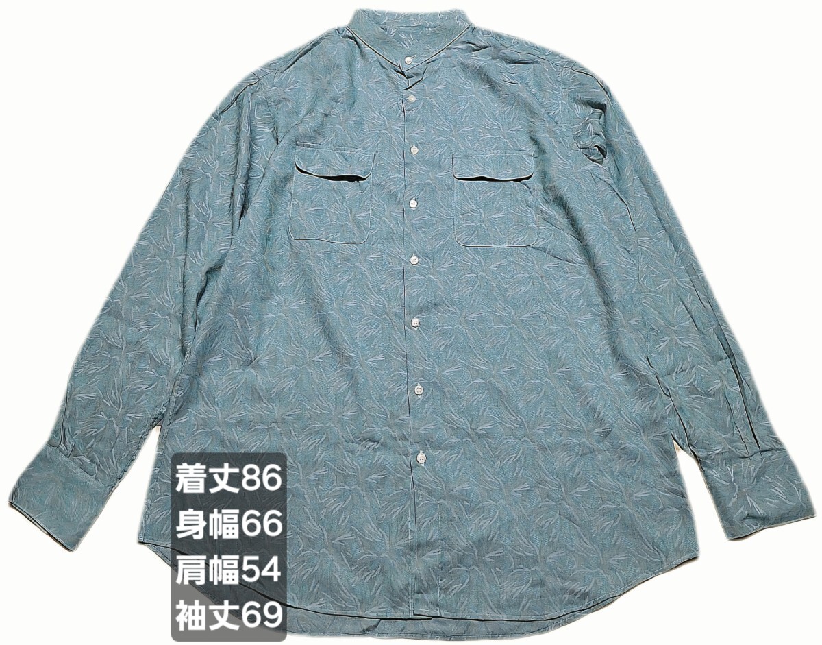 > 美品 バンドカラー スタンドカラー 長袖 シャツ 一点物 古着 メンズ フリーサイズ オーバーシルエット 美品古着 柄シャツ