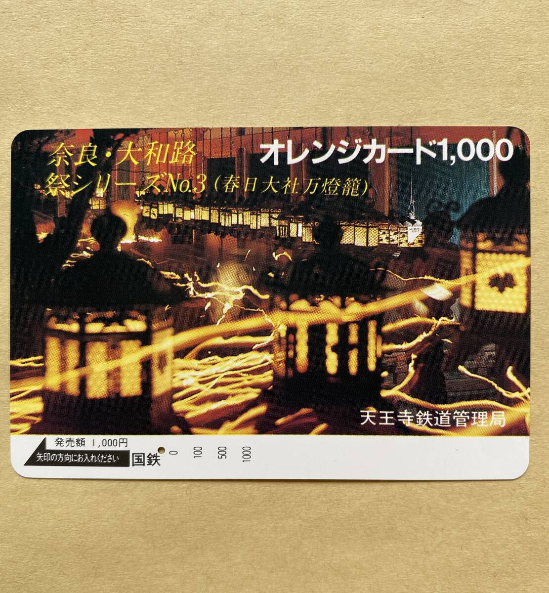 - 【使用済】 オレンジカード 国鉄 奈良・大和路 祭シリーズ №3 (春日大社万燈籠)