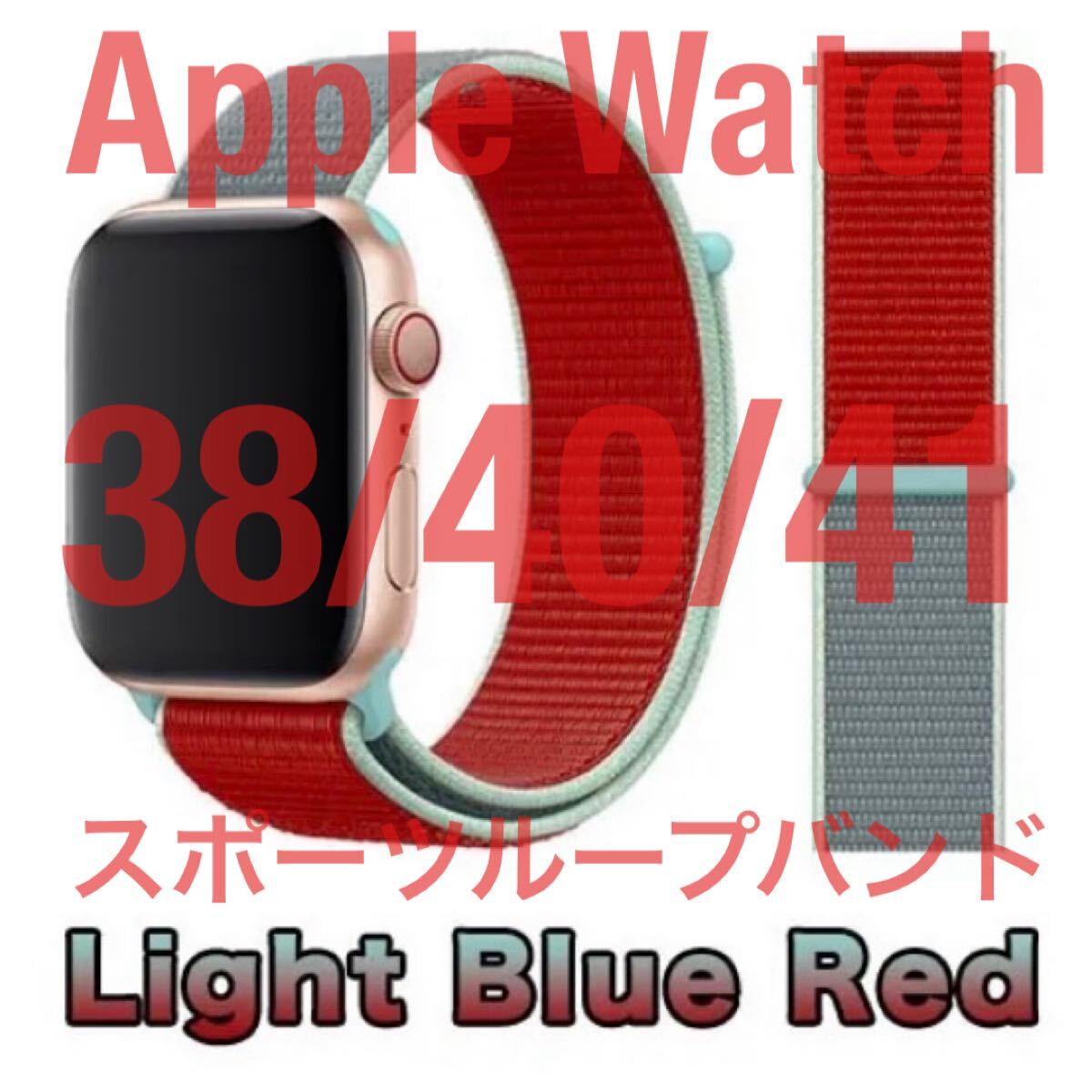 - 匿名送料無料 Apple Watch スポーツループバンド ライトブルーレッド 38/40/41 アップルウォッチバンド