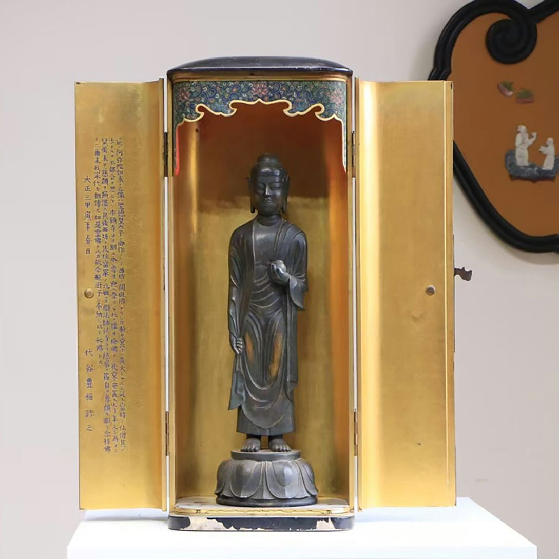 - ▼渡鶴羽▼A5932清時代 木製塗金仏龕 藥師仏 細工彫刻★仏教古美術★仏像★細密細工★廃寺旧蔵★廃寺買出品