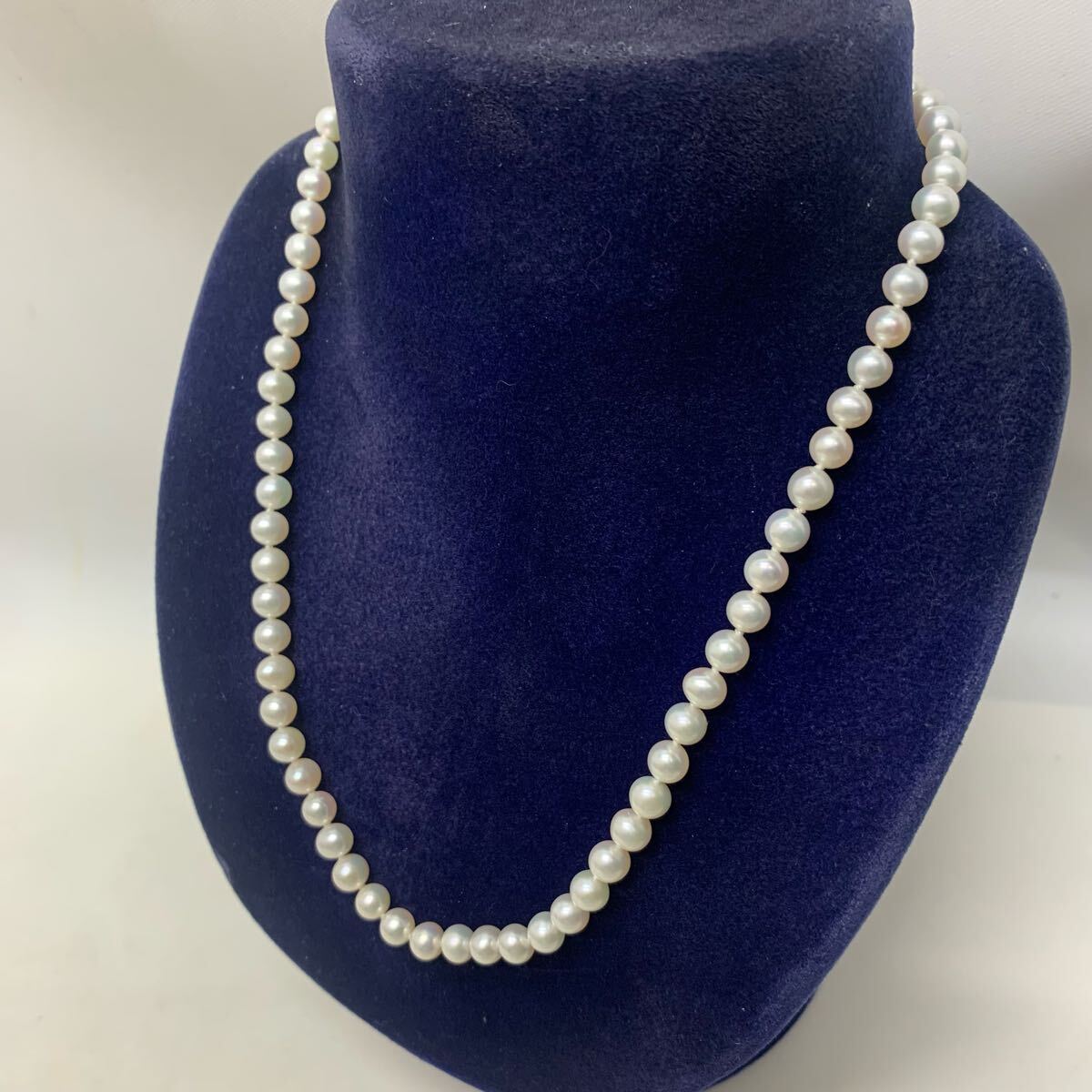 - 【美品】 パール 真珠 ネックレス アクセサリー シルバー925金具 5.5~6mm 20.2g 約40cm SILVER 本真珠 アクセサリー 留具