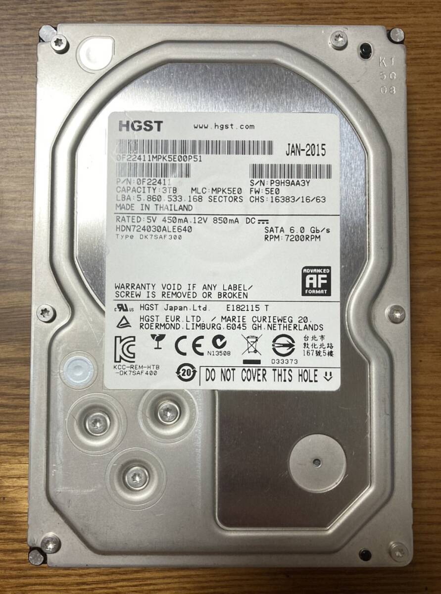 > 【状態◎】日立 Hitachi/HGST HDN724030ALE640 3.5インチ HDD 3TB(NAS向けHDD)