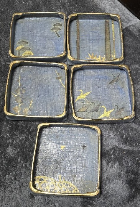 - 赤雲陶印入り赤雲窯 青い陶器の皿 5枚セット