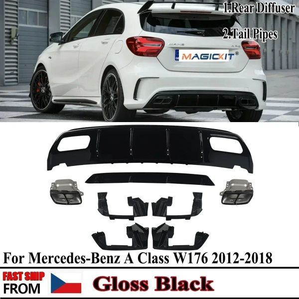 - 【送料無料】 リアバンパー ディフューザー ブラック セット ベンツ Aクラス W176 A180 A45 AMG 2013-2018 リア スポイラー カナード