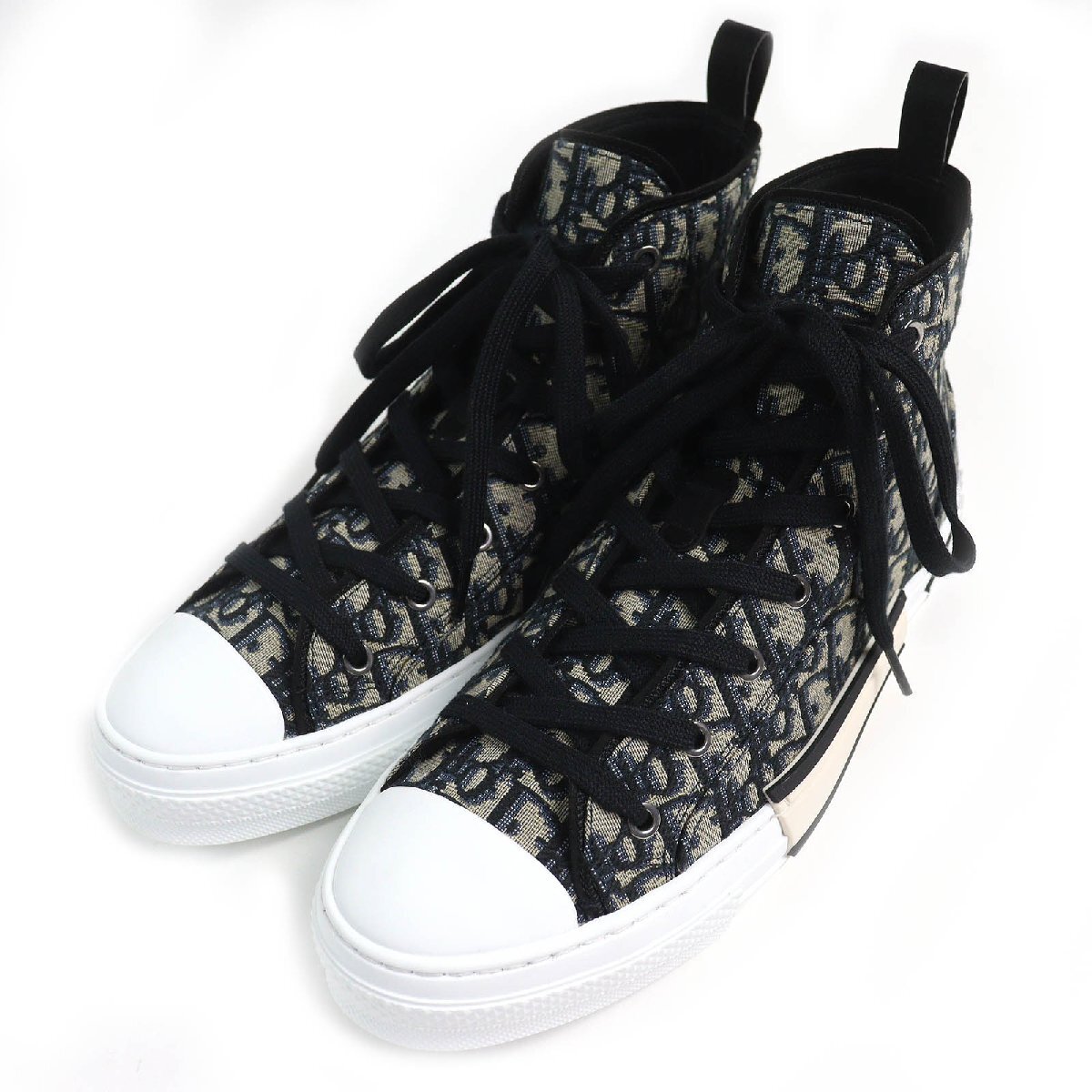 > 未使用品△DIOR ディオール オム 3SH126ZSA H961 B23 オブリーク ロゴ ハイカットスニーカー ブラック ベージュ 43 保存袋付 伊製 メンズ
