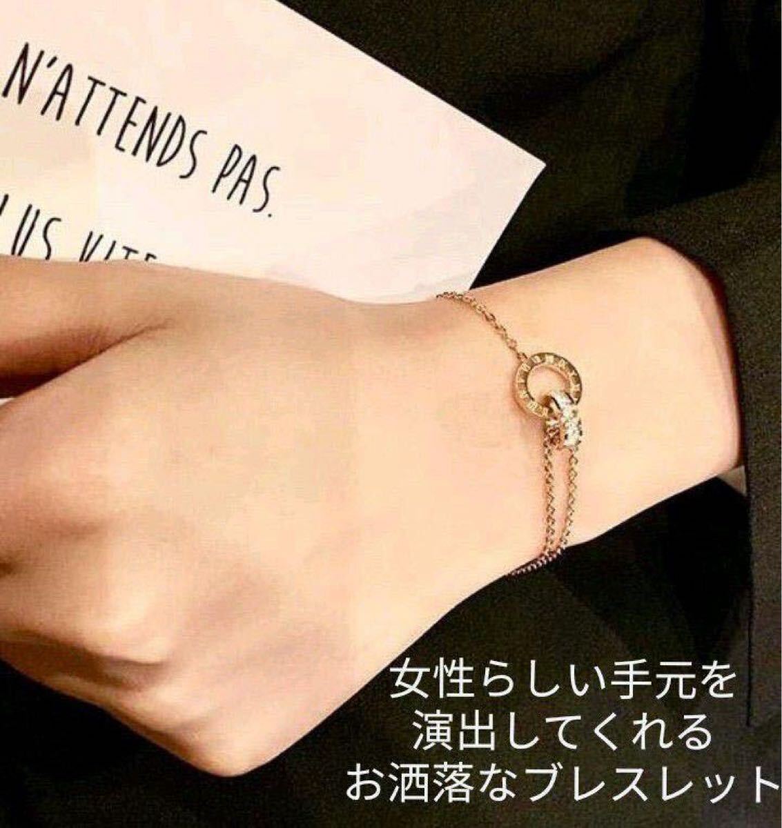 > ブレスレット ピンクゴールド☆プレゼント☆ダブルリング レディース アクセサリー アクセ 豪華 手元を華やかに