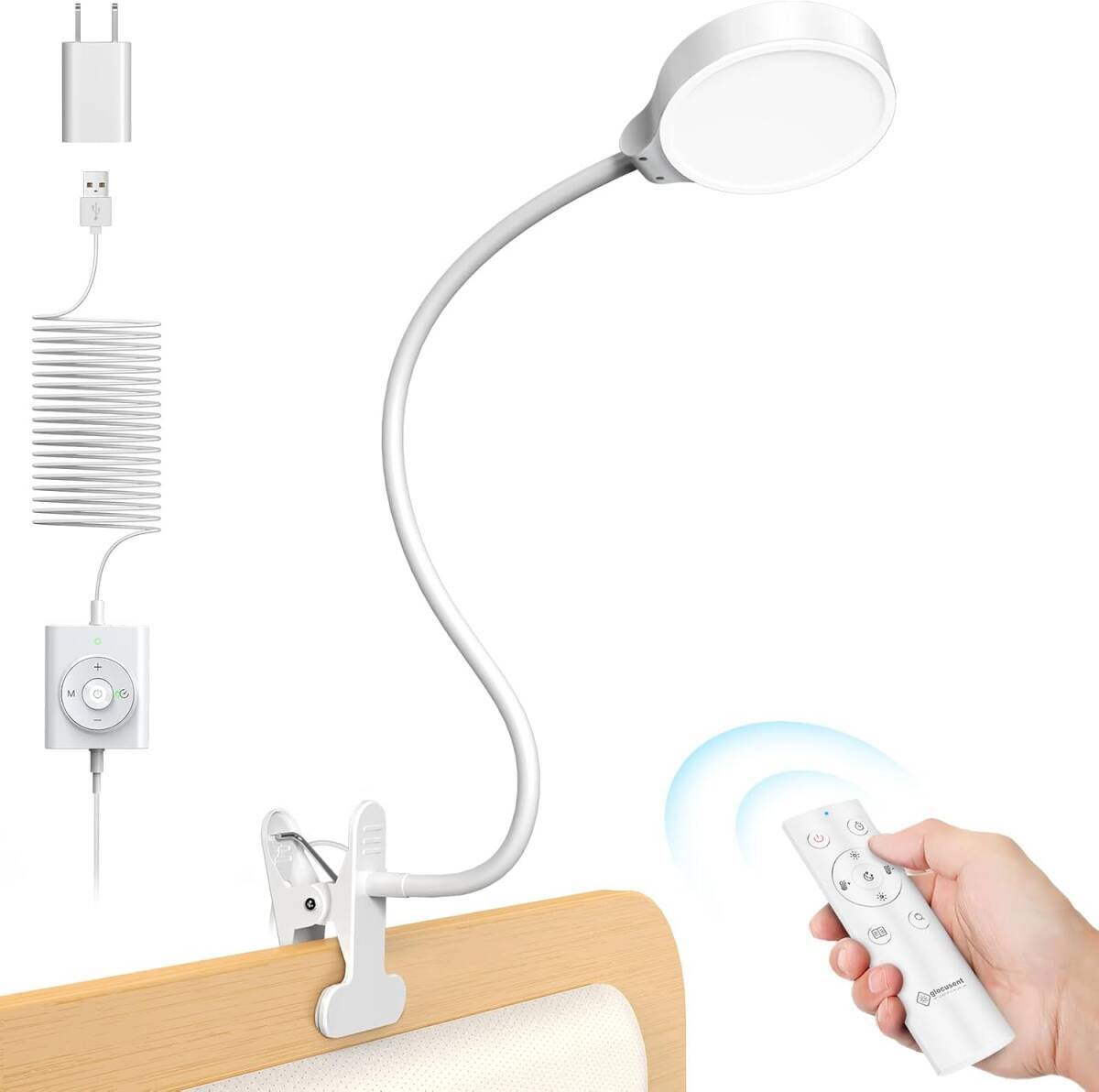 - クリップライト 36led デスクライト 読書灯 卓上ライト 3段階調色(電球/温白色/昼光色) 5段階明るさ調節 高輝度 360°回転 リモコン付